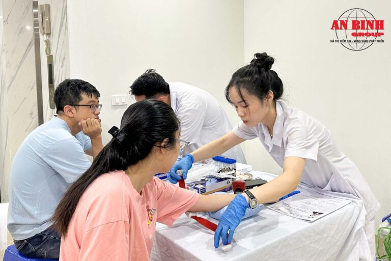 Chính vì vậy, Tập đoàn An Bình đã tổ chức khám sức khỏe định kỳ cho CBNV ngay tại tòa nhà văn phòng An Bình nhằm tạo điều kiện thuận tiện cho việc khám bệnh cũng như đảm bảo việc vận hành của tập đoàn được diễn ra thuận lợi. CBNV đều thực hiện nghiêm túc quy trình hướng dẫn khám sức khỏe của nhân viên y tế.